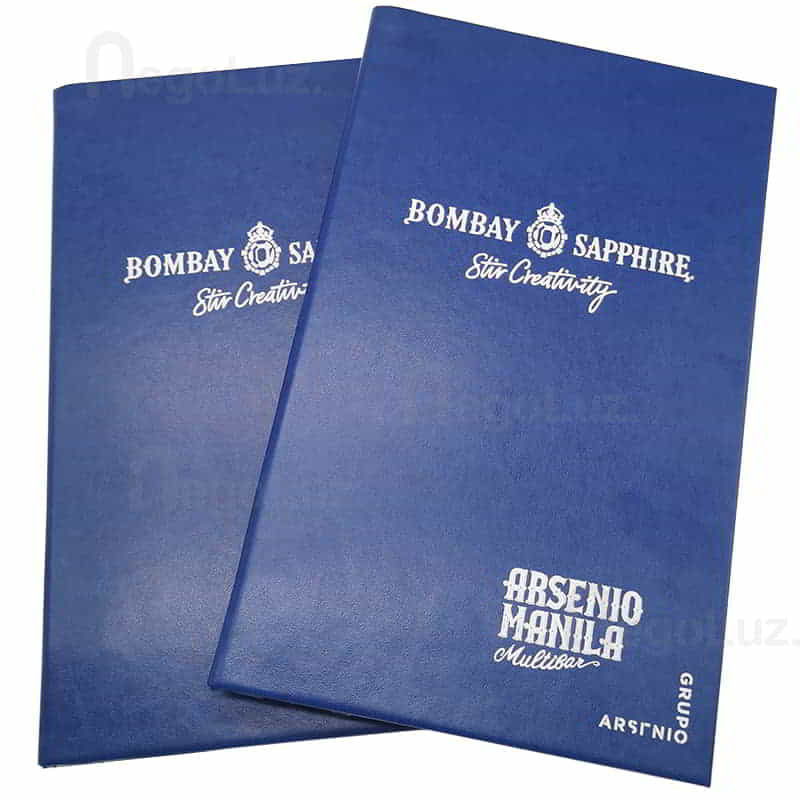 Logo or name is pressed down at high temperature on the menu using silver foil.