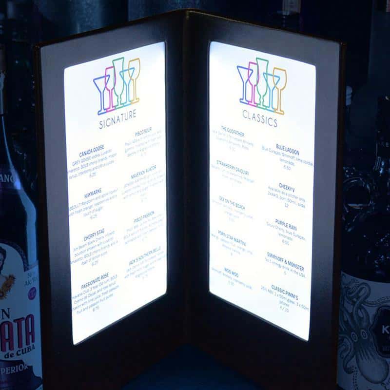 High quality illuminated menu, our LED menu cards are at the forefront and will set you apart from the rest. Stand out with the LED backlit menu cover!
